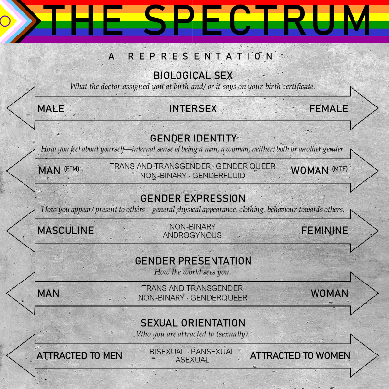Also, talking about sex, gender expression, gender identity, and sexual orientation can be daunting for those who were raised with a more fixed or narrower view of gender (a man or woman), sex (male or female), or sexuality (gay or straight).